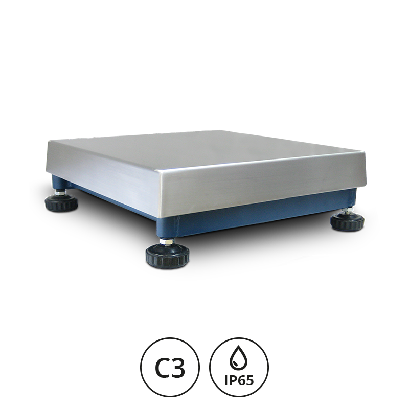 Piattaforme elettroniche di pesatura, monocella, di piccola e media portata con piano in acciaio inox.